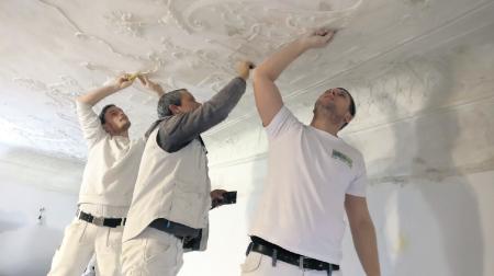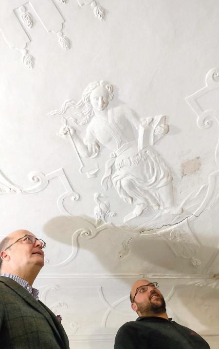 Handwerk. Wie restauriert man Stuckdecken fachgerecht? Schloss Weitenburg ist derzeit ein dankbarer Ort für die Praxis-Ausbildung von künftigen Restauratoren. Gipser und Stuckateure rechnen normalerweise in Quadratmetern. Hier geht es um Quadratzentimeter. Mit feinen Messerchen und Spachteln stehen die Stuckateurmeister auf der flächenfüllenden Arbeitsbühne im Tagungsraum von Schloss Weitenburg und kratzen, überkopf, Farbe von Voluten, füllen Risse und Hohlräume auf. Einer legt vorsichtig zwei Finger auf eine Stelle, an der er einen Hohlraum vermutet, klopft daneben vorsichtig auf den Stuck. Vibriert das Deckenstück leicht? Arkanthus und Bandelwerk Ein Schlachtfeld aus Gips Timo Müller - Mitglied im Nationalteam 2012